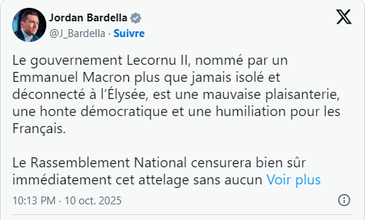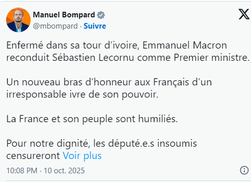 《法国侨报》讯:法国总统马克龙于当地时间周五深夜宣布,重新任命塞巴斯蒂安·勒科尔努(Sébastien Lecornu)为法国总理。这一决定在政坛引发轩然大波与反对派的集体愤慨,多位党派领袖接连发声,批评这是对民主和法国人民的“侮辱”。 勒科尔努在声明中表示,自己是“出于职责接受总统任命”,誓言将“全力以赴,为法国通过一份负责任的预算”。然而,这番言论并未平息争议,反而让政界怒火更盛。 右翼阵营的埃里克·西奥蒂(Éric Ciotti)率先宣布,将对勒科尔努政府提出不信任动议(censure)。极右翼领袖乔丹·巴尔德拉(Jordan Bardella)在社交媒体上痛斥此举是“一场民主的耻辱,一出糟糕的政治笑话”,并称“马克龙已被孤立、脱离现实”。他强调,国民联盟(RN)将立即投票否决这一“没有前途的政府”。 左翼“不屈法兰西”(LFI)领袖让-吕克·梅朗雄(Jean-Luc Mélenchon)同样毫不留情地批评道:“马克龙除了做出马克龙式的决定,什么也不会。” LFI的协调人曼努埃尔·邦帕(Manuel Bompard)则称此次任命是“对法国人民的又一次侮辱”,并宣布该党将再次提交弹劾总统动议。 与此同时,前总理伊丽莎白·博尔内(Élisabeth Borne)在社交媒体上发文祝贺勒科尔努,并呼吁“以妥协与团结为重,应对国家的重大挑战”。 马克龙总统的这一决定,被外界视为在法国政治僵局中一次高风险的“强行续任”。目前,多党派已表态将抵制新政府,这场政治风暴势必将在未来几周持续发酵。(来源:巴黎人报) 推广 |