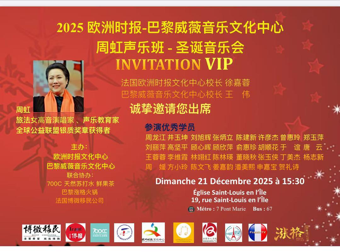 评论 在很多人的想象中,退休意味着舞台落幕、节奏放缓,甚至逐渐退居生活的边缘。但在巴黎冬至之夜,周虹老师和她的声乐班,用一场跨越8岁到80岁的圣诞音乐会,给出了一个完全不同的答案:退休,不是人生的“谢幕”,而是另一种更从容、更丰盛的绽放。 8岁到80岁同台放歌,感动全场!周虹声乐班圣诞音乐会在巴黎冬至之夜温情上演