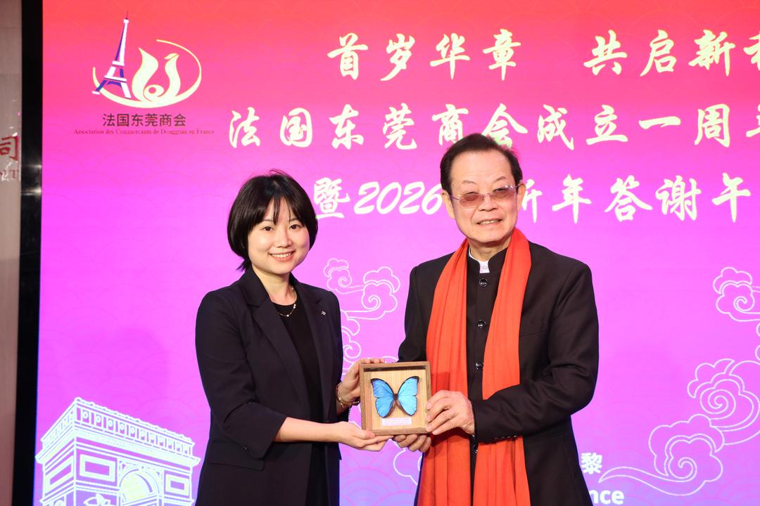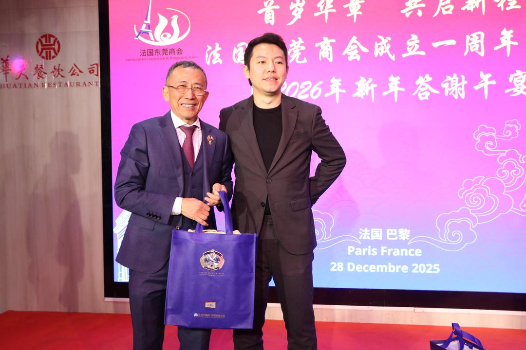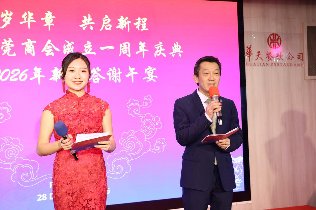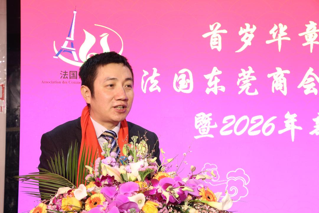 蔡强介绍,商会始终把搭建中法交流合作平台作为重点,积极组织和参与中法企业对接与交流活动,推动制造业、科技创新、纺织、电子等领域的务实合作。同时,商会坚持服务会员、造福乡亲,围绕会员在法国发展的实际需求,提供法律咨询、市场信息、资源对接等服务,并在机票优惠、商务出行等方面为会员和侨胞争取切实便利。 在履行社会责任方面,法国东莞商会积极融入旅法侨界,参与各项侨界活动,并在公益慈善和突发事件中勇于担当,以实际行动展现莞商的责任意识和家国情怀。同时,商会高度重视青年工作,组织会员家庭和华裔青少年回国、回莞参加“寻根之旅”夏令营和文化交流活动,增强下一代对祖(籍)国的认同感和归属感。 法国东莞商会名誉会长、法国华易公司董事长易华先在发言中表示,商会成立一年来持续凝聚侨心侨力,积极推动中法经贸合作,取得了阶段性成果。他介绍,华易公司已成为多家欧洲大型零售集团的供应商,为中国企业和中国品牌进入欧洲市场探索了新的合作模式。
