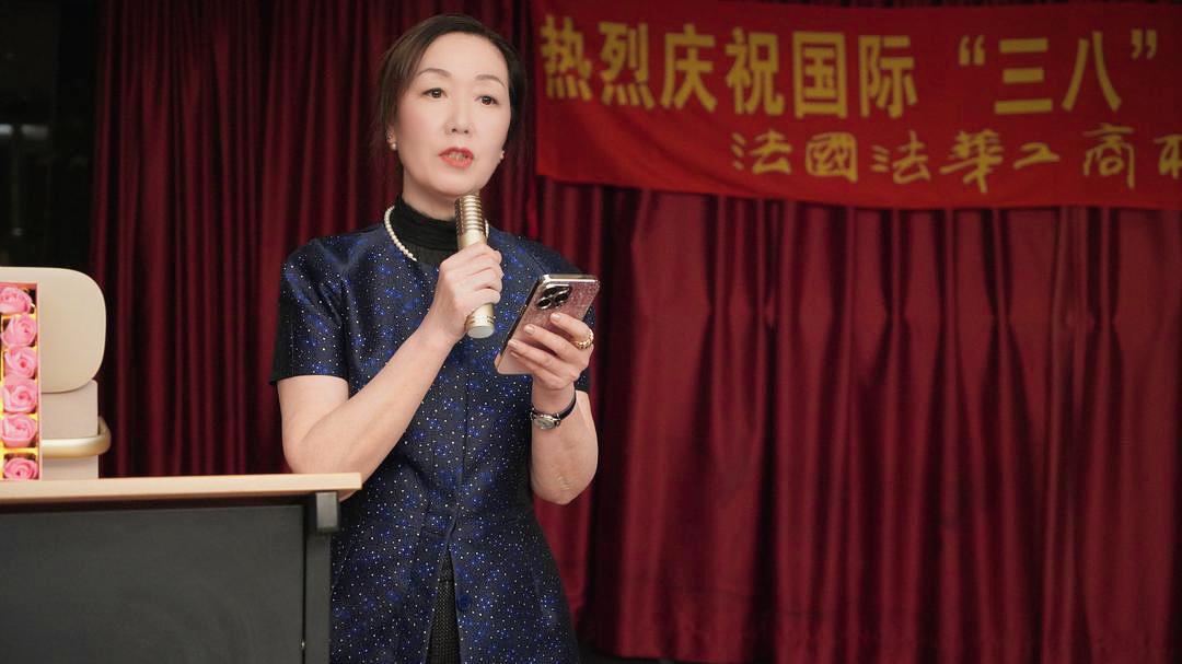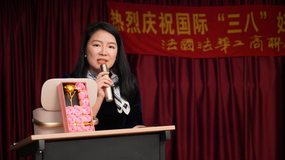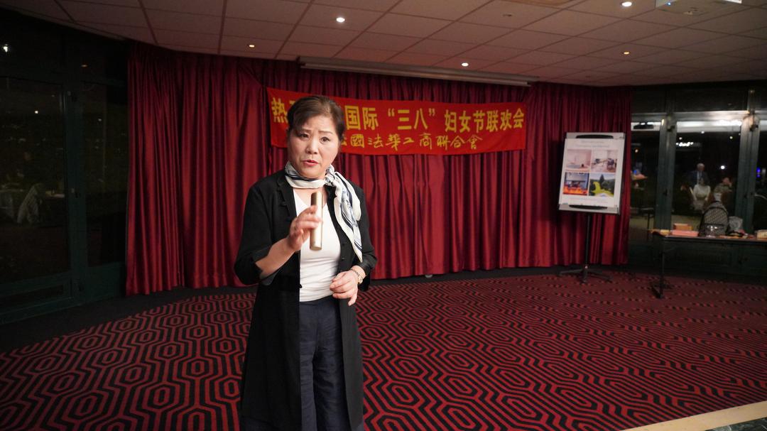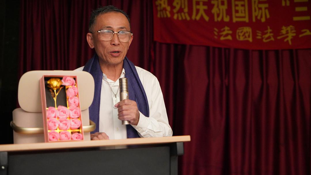 法国法华工商联合会会长梁丽华发表节日致辞。他向在座所有女士致以最诚挚的节日祝福,并感谢大家在家庭、事业和商会工作中的付出与贡献。他说:女性在生活与事业中发挥着重要作用,正因为有大家的努力与支持,商会这个大家庭才更加温暖而充满活力。