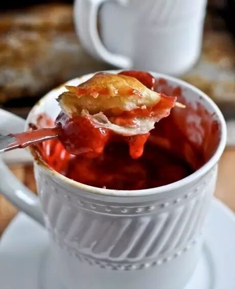 烤箱预热到204摄氏度,杯中放入草莓、糖、面粉和盐拌匀混合。4张派皮刷蛋液后放在草莓上,放微波炉烤25到30分钟,取出后放凉约5分钟