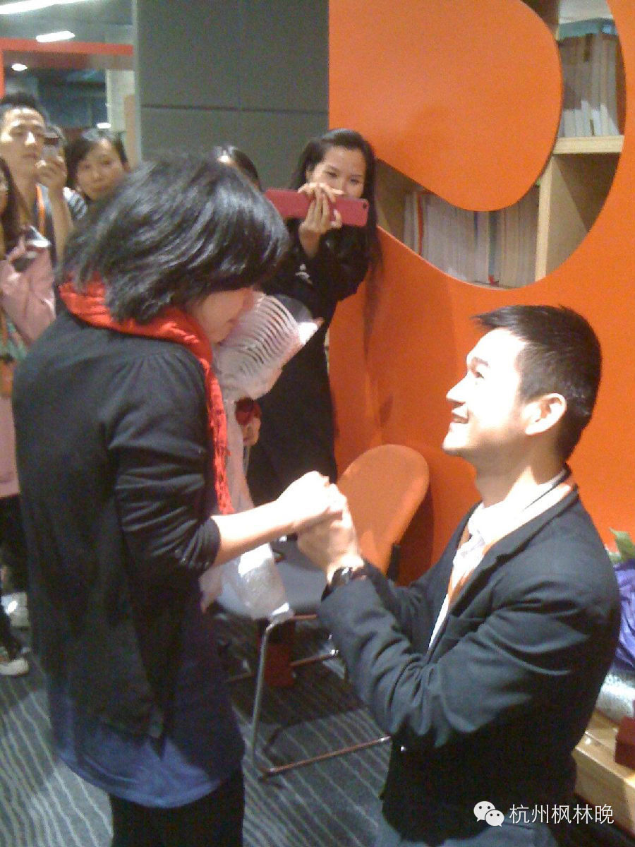 枫林晚图书馆浪漫记事:2010年10月3日,阿里员工在枫林晚图书馆求婚