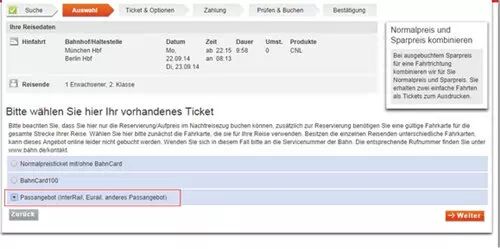 “ 如果没耐心看全文的话,简单地说就是选好车次后,点”Nur Aufpreis buchen“(英文页面里是”Book only extra charge“),然后继续按照流程预订就可以~~ ”