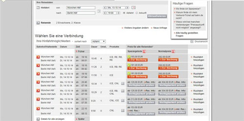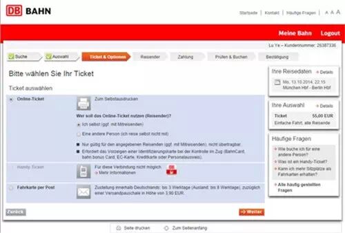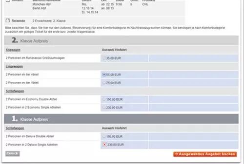 找到合适的车次之后,点击"Zur Buchung"或者"Verfügbarkeit prüfen"按钮,正式开始订。