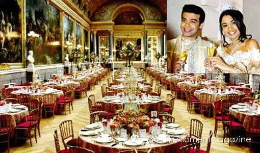 印度钢铁大亨米塔尔为女儿举办的婚礼被称为全世界最昂贵的婚礼。订婚典礼举办地在昔日路易十四大排筵宴的王宫——凡尔赛宫。晚上在杜乐丽花园举办招待晚宴。婚礼则是在17世纪的子爵堡内举行,而嘉宾们则会先在埃菲尔铁塔燃放的烟火中,在著名歌手Kylie Minogue的演唱中进行签到仪式。敢情就是个结婚为名的印度豪华旅游团啊!