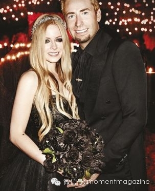 摇滚小天后艾薇儿与加拿大当红摇滚乐团五分钱(Nickelback)的主唱查德-克罗格(Chad Kroeger)在南法的La Napoule城堡举办婚礼,并在阳台上与众宾客一起观赏了焰火。新娘不仅身穿黑色婚纱,并且连玫瑰花,蛋糕等道具都统一黑色。当然,这段黑色另类的婚礼虽然充满个性,但其结果却好景不长。天后在最近的新婚中选择了传统的白色婚纱。