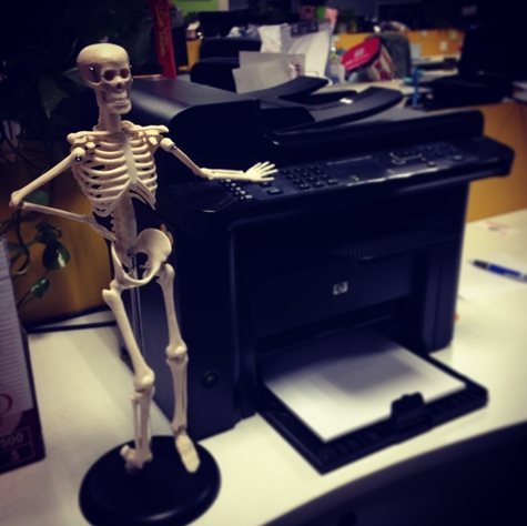 还有打印机旁姿势妖娆的 squelette(骷髅,骨架)!