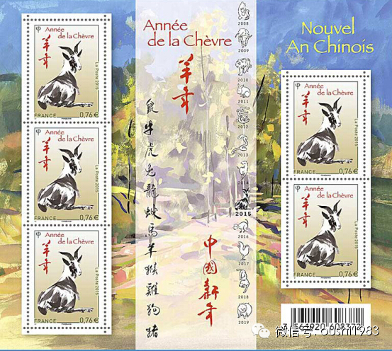 【新年新气象】法国将发行2015中国羊年生肖纪念邮票2015年是中国农历羊年。法国国家邮政总局在连续10年发行鸡年、狗年、猪年、鼠年、牛年、虎年、兔年,龙年,蛇年和马年农历中国生肖纪念邮票之后,2015年将第11次发行中国生肖纪念邮票,法国中国“羊年”邮票。
