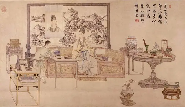 一切书房的硬件准备就绪,那么古人还规定了不少软件需要搭配,内容繁杂,但颇有些很有趣,也值得学习学习。比如,什么情景是读书最相宜的?答曰十二件:“净几名香展对,韵士宴会赏鉴。名饮揭置座右,野老晴雨较量。同心登眺提携,空谷时当足音。良辰美景称说,可见锦囊怀袖。佳人知趣把玩,驯仆拂晒收藏。装制妙手整齐,趣人珍获送还。”在我看来,佳人知趣的少,趣人送还的难,大多都是有借无还。那么,读书最恶心什么事呢?也颇有几件:“黄梅天,指甲痕,胡乱题(乾隆中枪),屋漏水,收藏印多(乾隆又中枪),油污手。恶装缮,研池污,市井谈。裁剪折,蹙灯下,酒后,鼠啮,临摹污损,市井搅,喷嚏,轻借,妻夺,客催逼,蠹鱼,硬索巧赚,代枕,问价。”这几条细品味,还真是可怕的很。但书之厄仅于此么?不,还有更严重的,一条沾上,书就算是毁了,这些劫难如下:“入村汉手、水火厄、献豪门、一剪作练裙袜材、不肖子不读书、殉葬。”有人说其他好懂,这入村汉手、献豪门有那么可怕么?当然可怕,村汉不读书,拿了书做什么?还不都上了厕所?豪门哪有读书材?也就是束之高阁,这和打美人入冷宫有什么区别?这样一想,顿时心生恐怖。