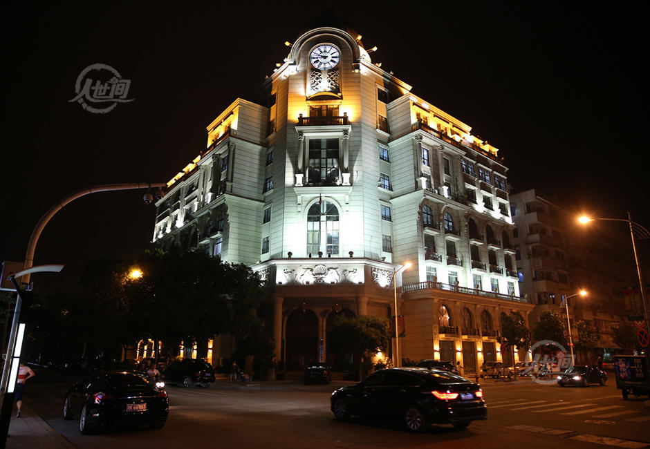 一座欧式风格的建筑在夜晚显得十分靓丽。