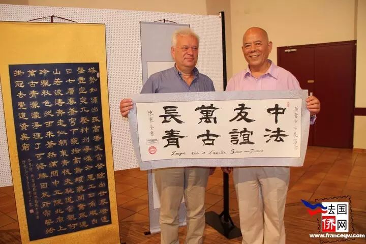 [color=rgba(245, 51, 138, 0.933333)]法国书画家协会主席陈秉奎也向莫雷市政府捐送了他书写的“中法友谊万岁”书法。之后,Patrick Septiers和Jacques Bel共同为此次参展的艺术家任炯、陈秉奎和萧青颁发参展证书,并分别与艺术家合影留念。此次展出了国内书画家任炯、董一点、张广泽和旅法艺术家陈秉奎、萧青、孟子珠、王玉斌的作品共四十余幅。其中,任炯所带的49幅作品在布展期间被一位法国收藏家购买收藏。