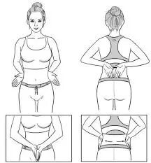 3) 当推到两侧的时候双手在背后勾手,手背相互靠在一起。