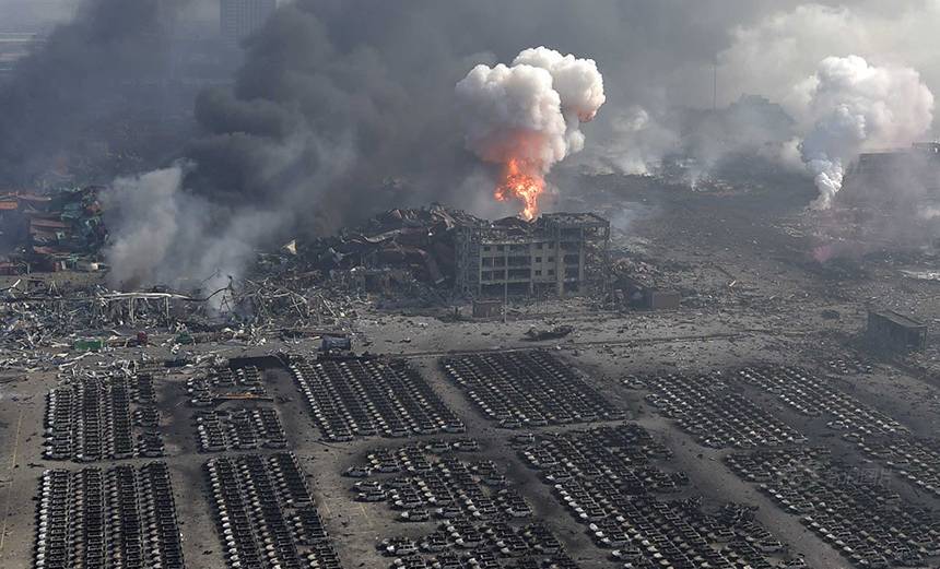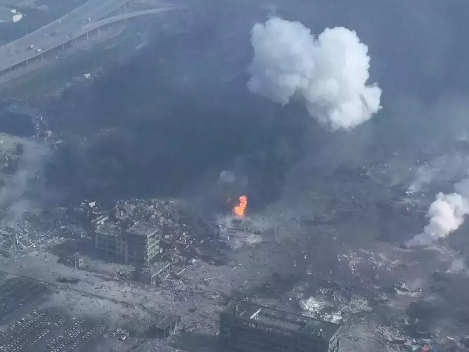 爆炸现场火光冲天,天津塘沽、滨海以及河北河间、肃宁、晋州、藁城等地有震感。第一次爆炸发生在8月12日23时34分6秒,近震震级ML约2.3级,相当于3吨TNT;第二次爆炸发生在30秒钟后,近震震级ML约2.9级,相当于21吨TNT。天津市滨海新区12大街到塘沽四号路已全部戒严。