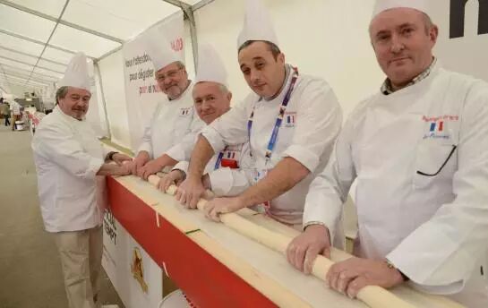 “我们来自阿尔卑斯的同事准备了面团,然后我们将它捏成型。这是艰苦的工作,我们用了八小时来完成它”,面包师Fred Picquemard 解释说。之前的世界纪录是2009年8月24日,为庆祝Casino集团成立111周年,由一组面包师在胡志明市(越南)创造的。当时他们制作的长棍面包长度为111米。
