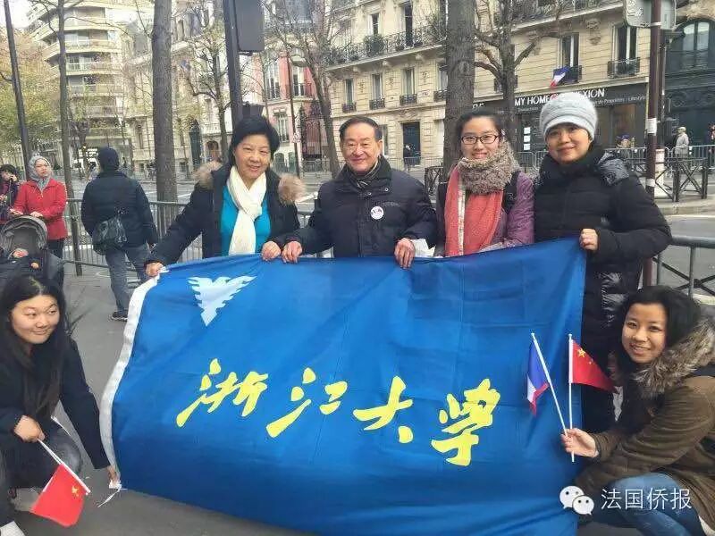 2015年11月30日,巴黎浙江大学校友会、武汉大学校友会等巴黎学子,喜迎到法国参加气候大会的习近平主席