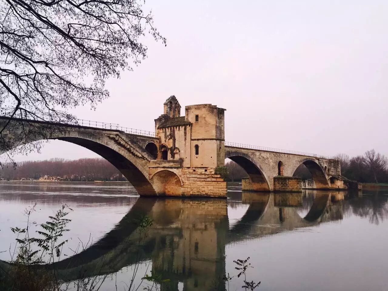 城中的教皇宫(le Palais du Pape),古朴肃穆。而罗讷河上的阿维尼翁桥(又名:圣贝内泽桥 (le Pont St-bénezet)),虽然经过百年洪水冲刷,大桥已断,桥拱也由最初的22个,剩下现如今的4个,但却丝毫不影响它坚毅挺拔的气质。从桥上回望整座城,宛临圣地。