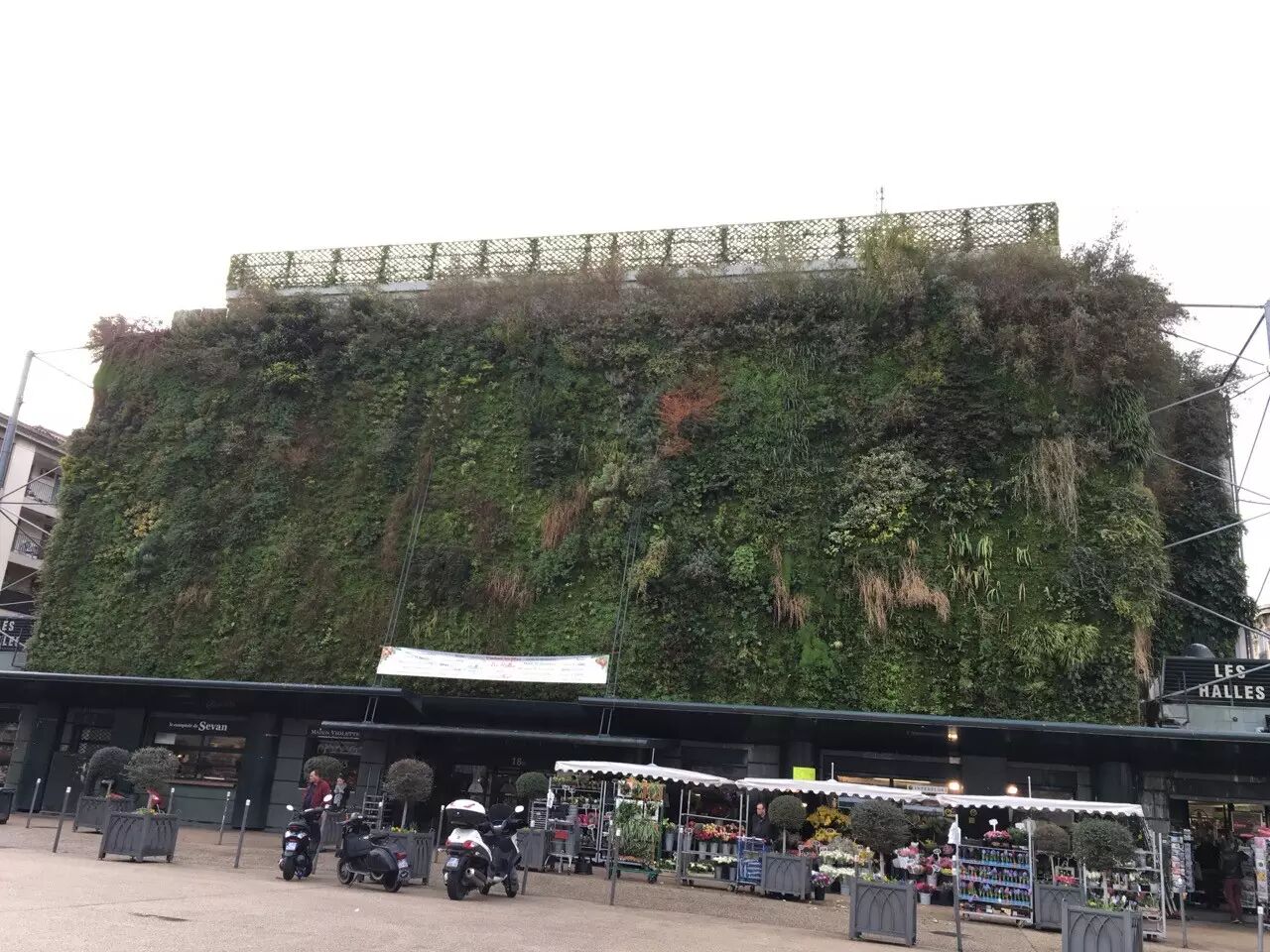 经过一个前面摆满鲜花的花店上面,是一堵高高的,长满了各式各样的绿色藤蔓。好美啊!