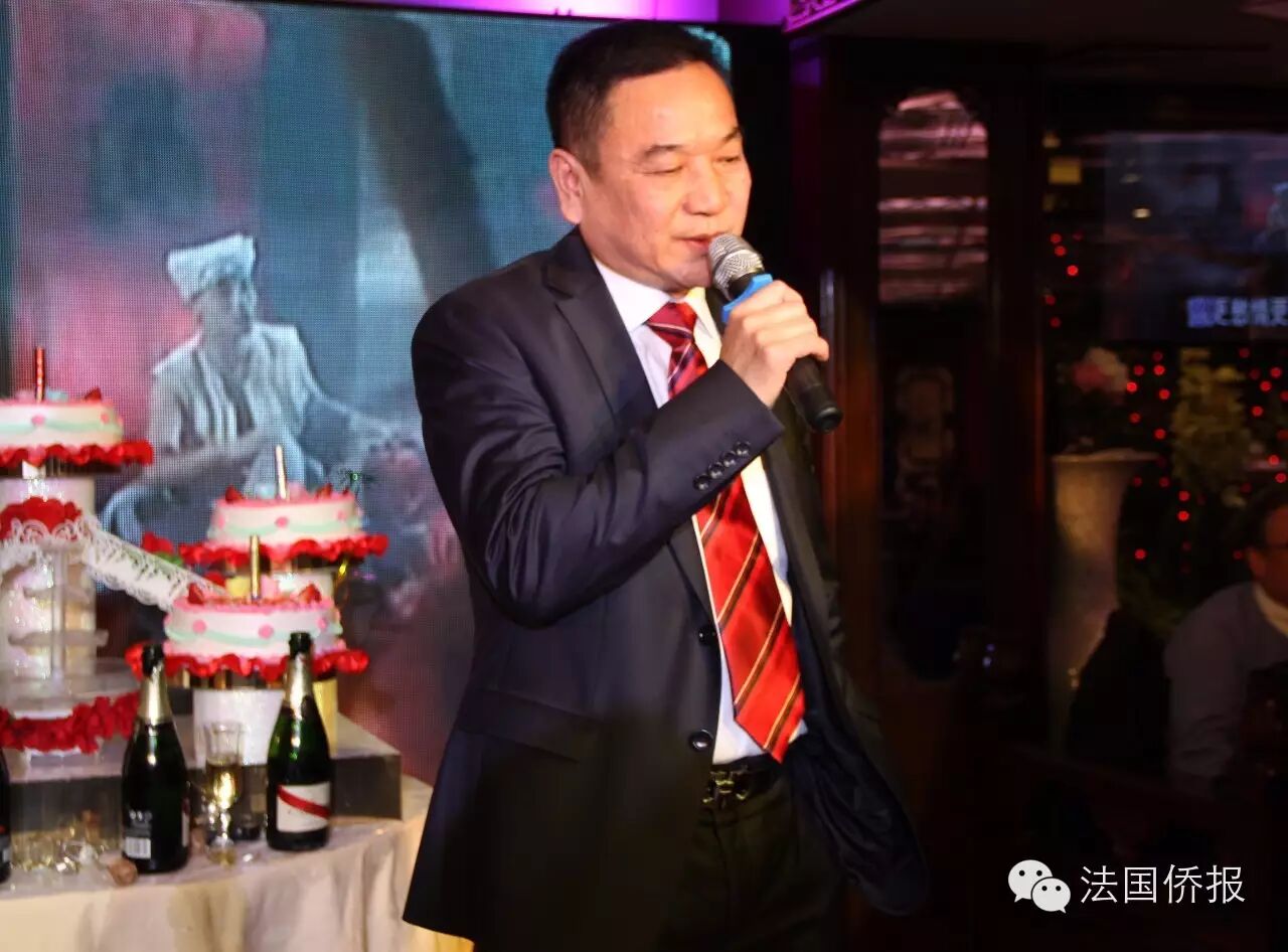 群主邵瑞明先生在晚宴上致辞。他说:法国华商互助友谊群自去年成立以来,一直本着“团结互助,联系友谊”的群宗旨,为旅法华商提供一个自由交流的新媒体平台。通过平台交流,向他们普及最新的法律知识,解决旅法华侨华人在生活、工作中遇到的各种法律问题,帮助他们更快、更好地融入法国社会。