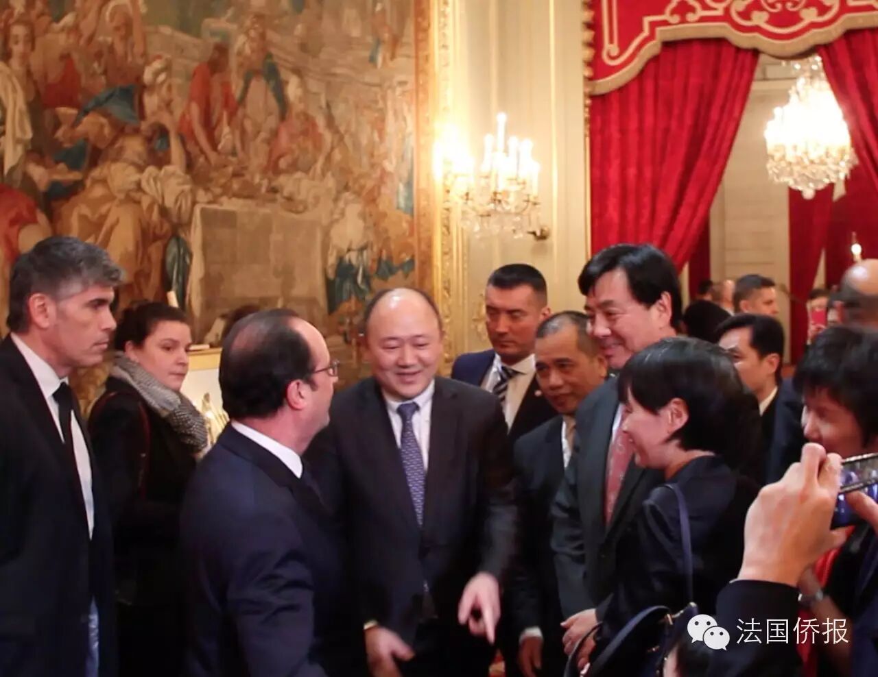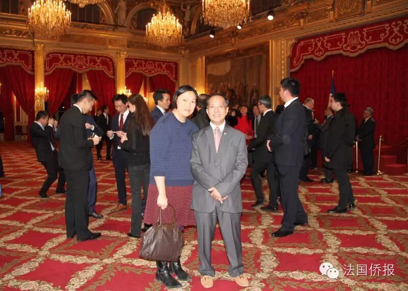 本报讯:(记者 ANNA)2月11日晚,法国总统府金碧辉煌、美轮美奂,一片喜气洋洋,法国总统奥朗德与旅法华侨华人在爱丽舍宫共庆中国猴年春节。中国驻法国大使翟隽、领事部一等秘书王原、法国国务秘书勒甘、巴黎市议员、法国亚裔高等理事会主席陈文雄、巴黎13区区长顾梅、巴黎六区区长勒考克等与亚裔各界代表近600人应邀出席了春节招待会。