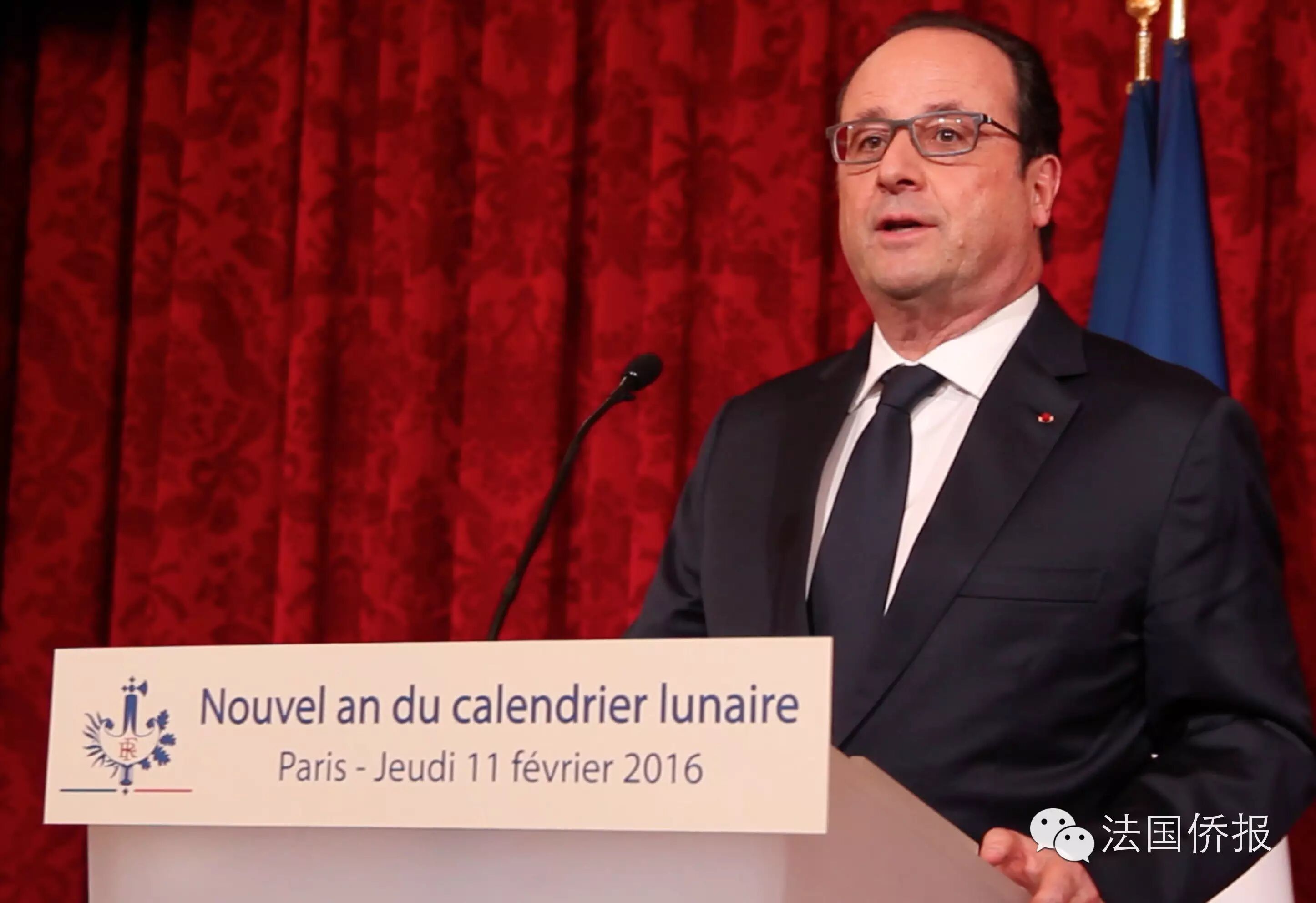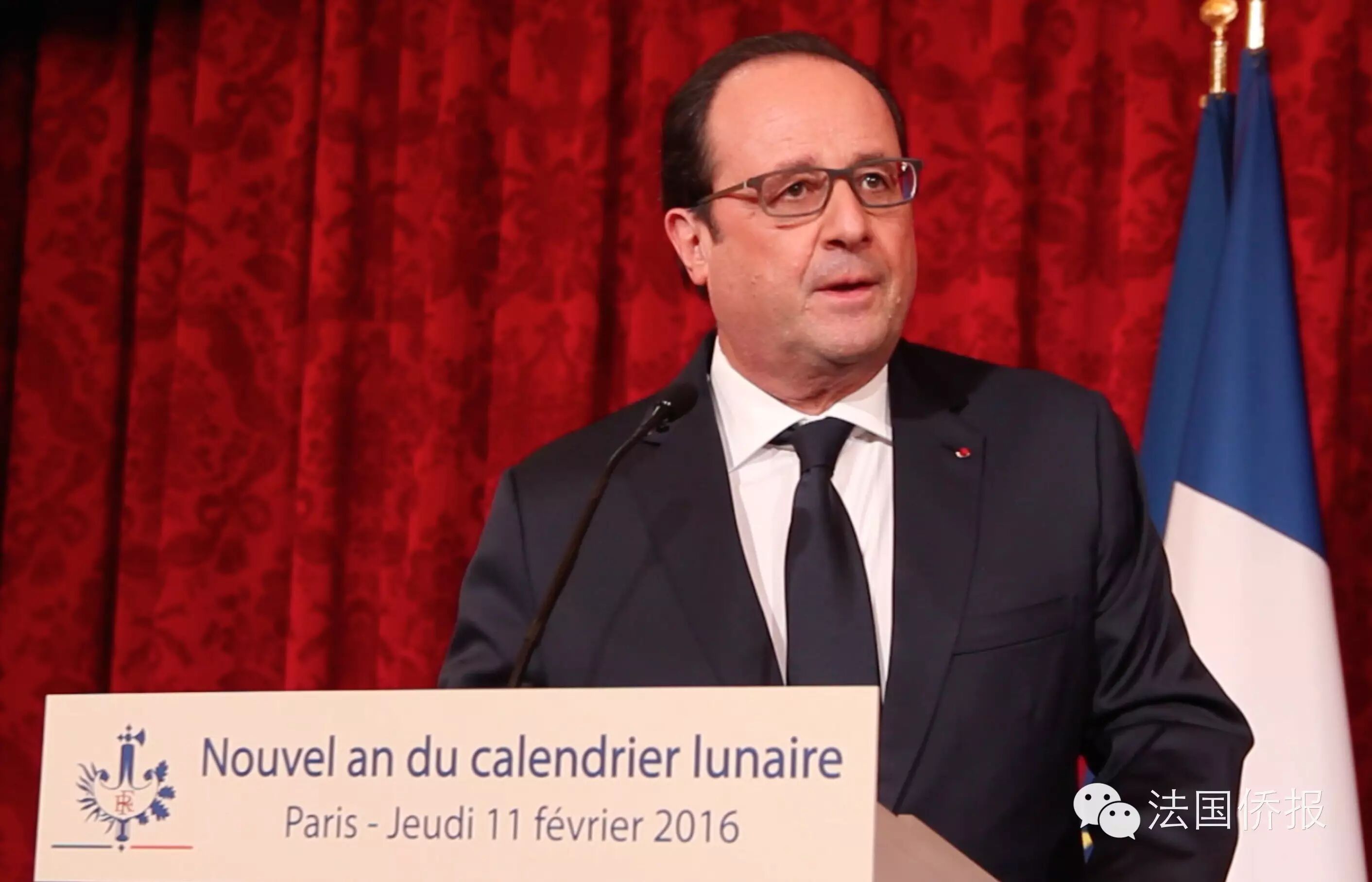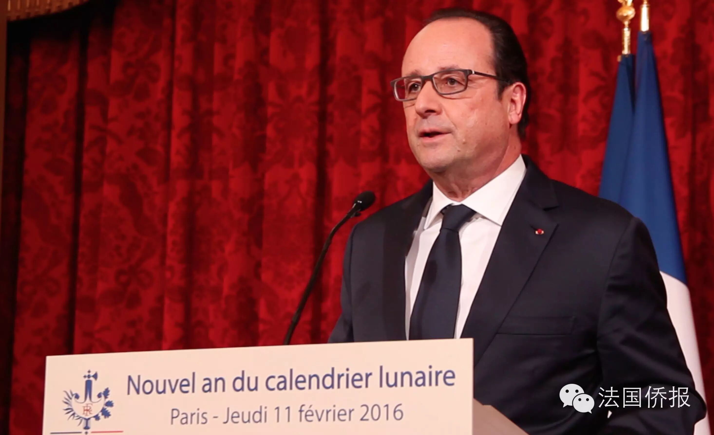奥朗德总统首先为在场的嘉宾送上新春的祝福。他在致辞中表示,在法国过春节已经变成一个传统,经过亚裔社群的努力,中国春节已经从亚裔的节日发展成法国人民的节日,成为与亚洲人民共享的节日。今年的春节具有特殊背景,法国在去年11月13日遭遇恐怖袭击之后,法国国家处于紧急状态,但是我们的生活应该继续,也应该庆祝节日,即将举行的巴黎13区春节游行等庆祝中国新年的活动是大家分享幸福快乐的方式。