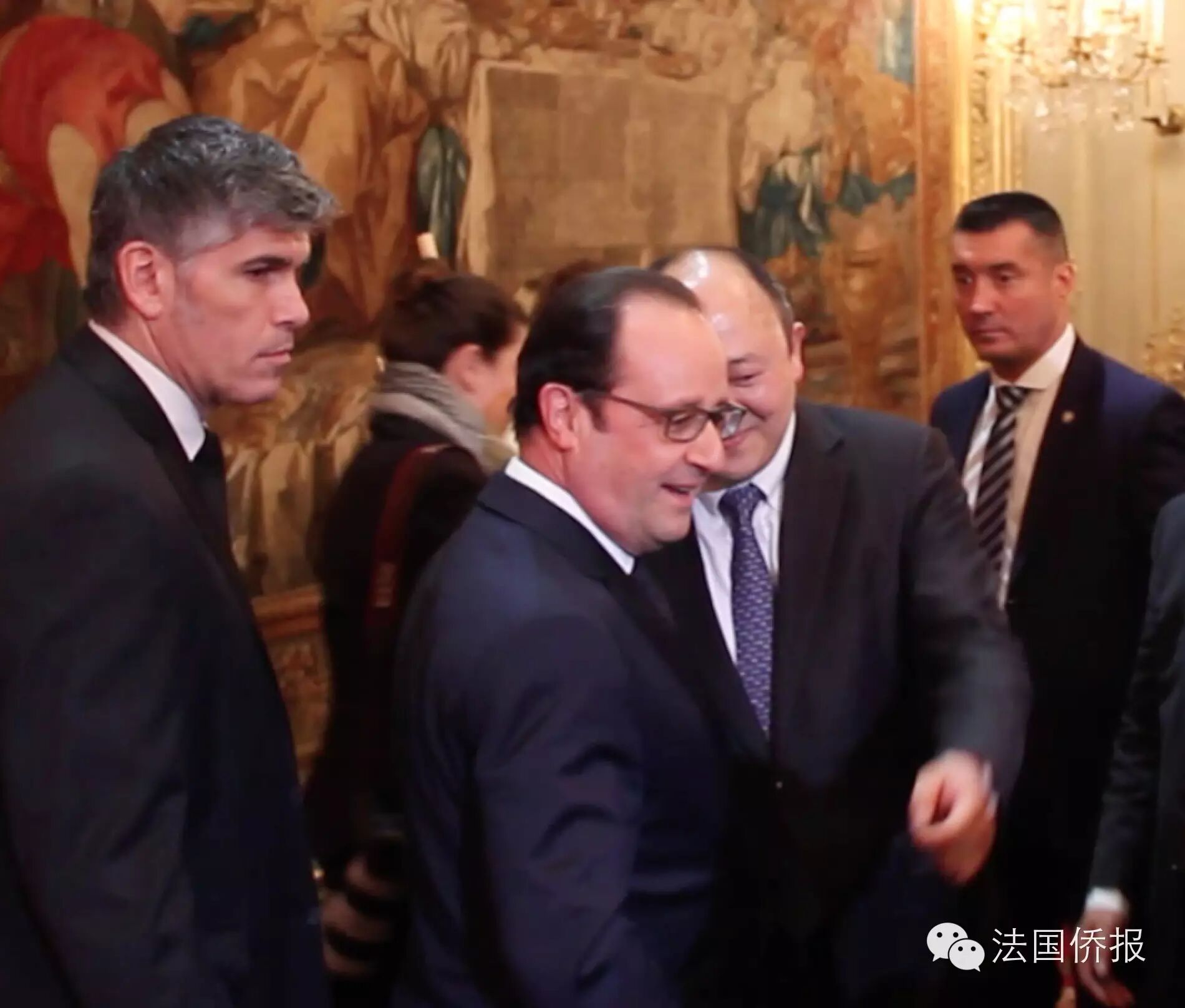 奥朗德表示感谢到场的嘉宾,在场嘉宾的友好和睦相处代表了中法两国的友谊。他说,法国人喜欢亚洲人,他曾访问过中国、新加坡、韩国等亚洲国家,也即将访问越南和马来西亚。最后,奥朗德总统再次祝愿大家新年快乐,并走向前排与中国驻法大使翟隽握手致意。