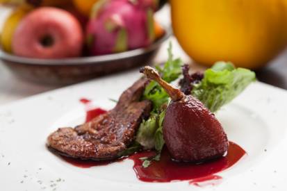 鹅肝是一道基于新鲜的动物肝脏的烹饪特色菜,肝脏来自于饲养和育肥的填鸡和填鸭。传统的吃法是作为前菜冷吃,经常也作为节日餐。