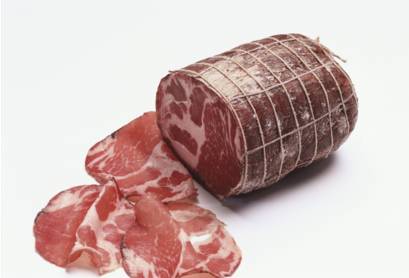 La coppa est une spécialité charcutière italienne et corse, qui se consomme crue. La coppa est fabriquée à partir de l’échine du porc, que l’on fait macérer dans du sel puis que l’on lave avec du vin.Coppa是一种意大利和科西嘉的猪肉特色,人们都是生吃的。是用盐渍接着酒洗后的猪的脊骨肉制作而成。