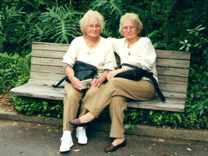 标题: 牵手走过一整个世纪的双胞胎。 一起优雅老去,这大概是...