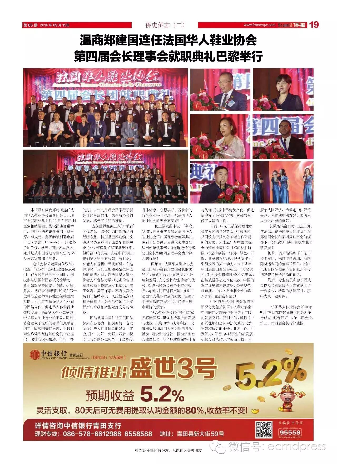 第九:温商郑建国连任法国华人鞋业协会第四届会长理事会就职典礼巴黎举行