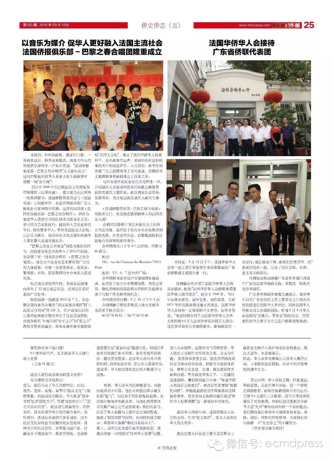 第十二:以音乐为媒介促华人更好融入法国主流社会法国侨报俱乐部-巴黎之春合唱团隆重成立