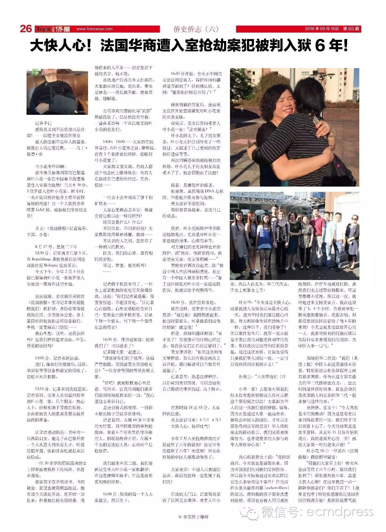 第二:大快人心!法国华商遭入室抢劫案犯被判入狱6年!