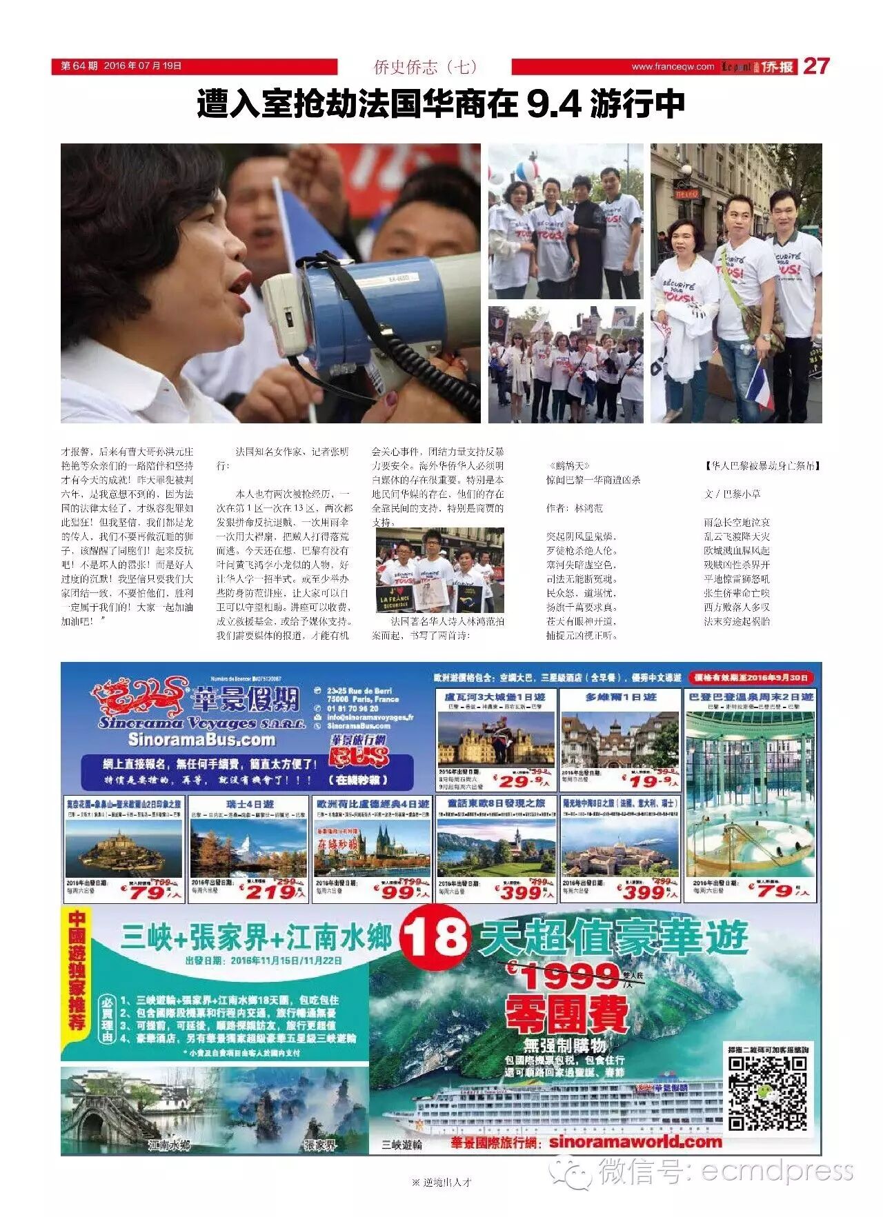还记得吗?激荡风云的9.4旅法华人大游行?……继法国侨网 (www.franceqw.com)、《法国侨报》微信、微博、facebook 和twitter的即时报道外,精心策划的纸质媒体《法国侨报》将为你留下历史性的纸墨香……泛欧国际文化传媒集团所属的《法国侨报》纸媒、网媒等全媒体报道,为你留下永恒的历史记录。请看……