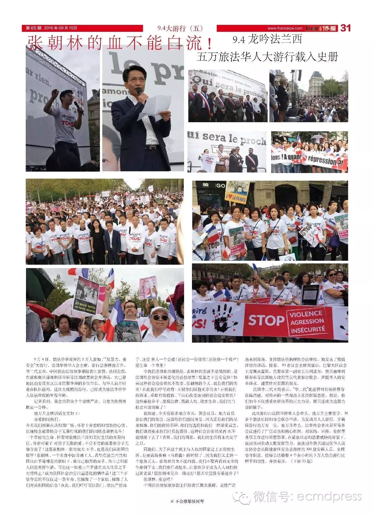 第一:张朝林的血不能白流!9.4龙吟法兰西五万旅法华人大游行载入史册