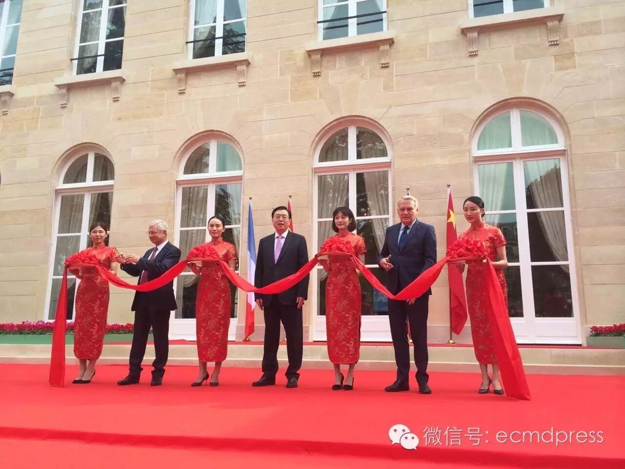 本报讯:乔迁之喜!中国驻法大使馆有新家啦!新馆舍在巴黎第七区靠近荣军院!使馆新址:(20 Rue Monsieur,75007,Paris.)。9月26日上午,中国人民代表大会常务委员会委员长张德江出席了中国驻法国大使馆新址落成典礼,和法国民议会议长巴托洛纳、法国外长艾罗一起剪彩;中国驻法国大使翟隽、法国前总理拉法兰法国政府与议会关系事务国务秘书勒甘、巴黎议员陈文雄等中法两国政要与旅法侨界、中资机构和留学生代表等出席了活动。