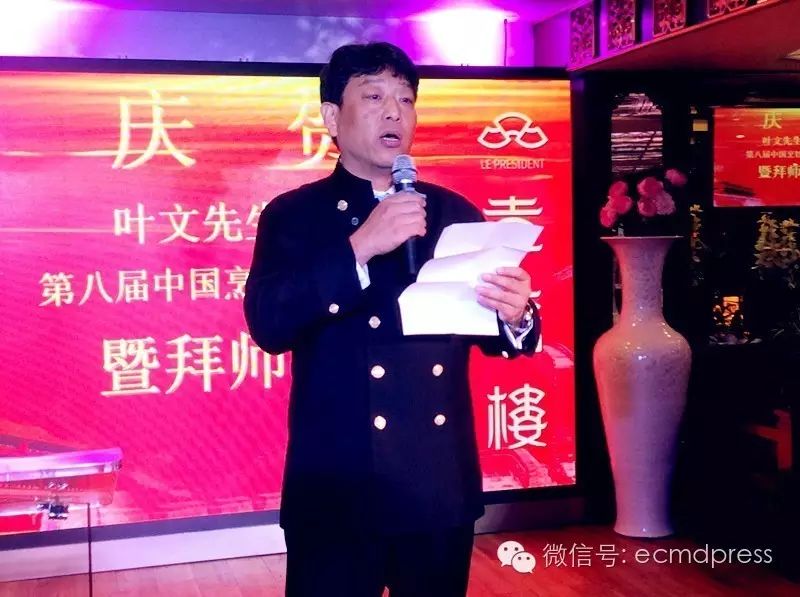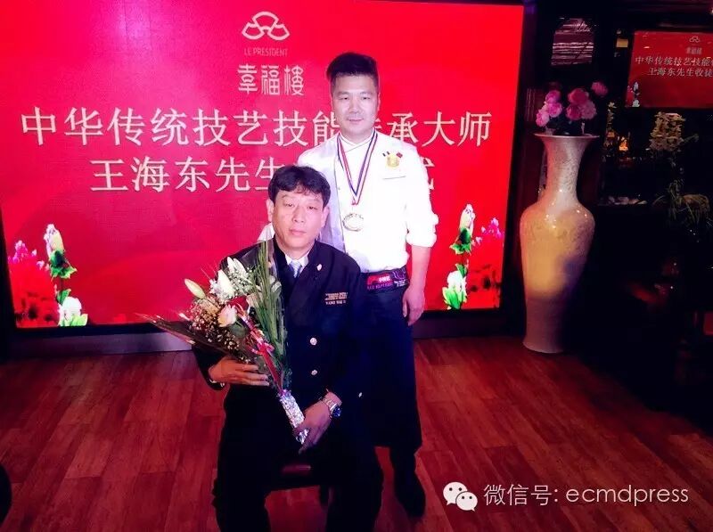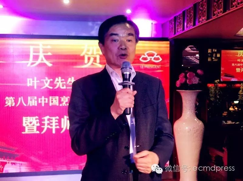 8:20 分 叶文激动地向在场的各位表示,这次除了代表法国亚洲餐业协会参加荷兰第八届中国烹饪世界大赛夺得4金1银、世界中餐排名第四。海外第一名、冷菜金牌、热菜1金1银、甜点金牌、团体金牌以外,通过这次比赛,被誉为“中华传统技艺技能传承人”的王海东大师高尚的人品和精湛的技艺所深深钦佩,所以希望拜入其门下,将中华美食文化在法国发扬光大。