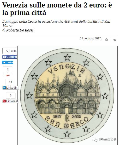 标题: 好消息:即将全球发行2欧元威尼斯硬币,是第一个城市
