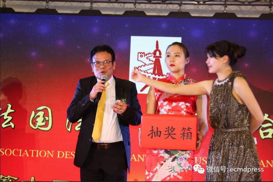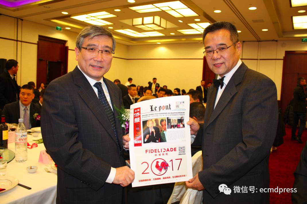 中国驻法大使馆关键公使代表翟隽大使向法华工商联合会第12届会长团成员和全体会员表示热烈的祝贺!