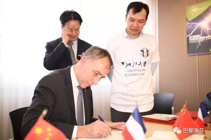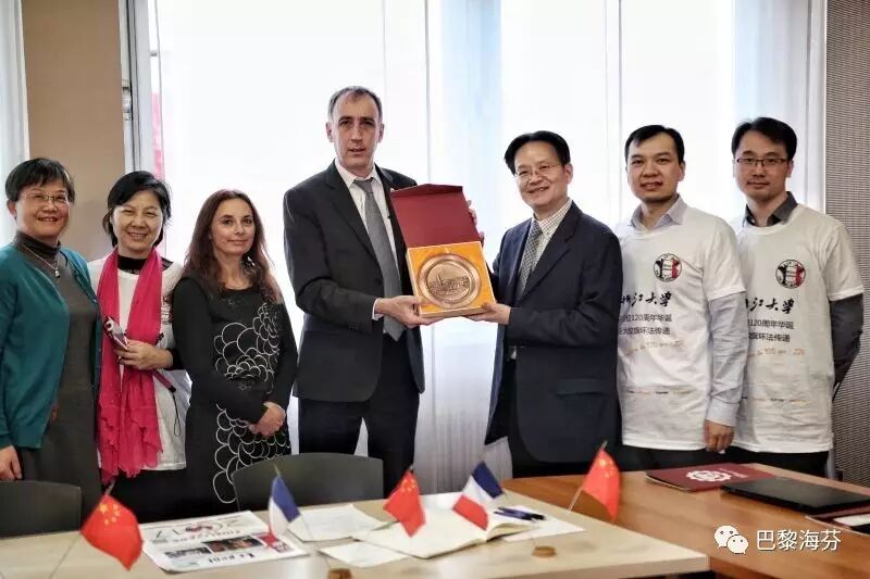 富朗克非常客气!他给我们每位采访者都准备了有中央理工照片的精美的镜框。好在,注重礼尚往来、很懂得和法国人打交道的法国浙大校友会会长王晓杰等,都早早准备好了浙大铜牌作为回赠的礼物。