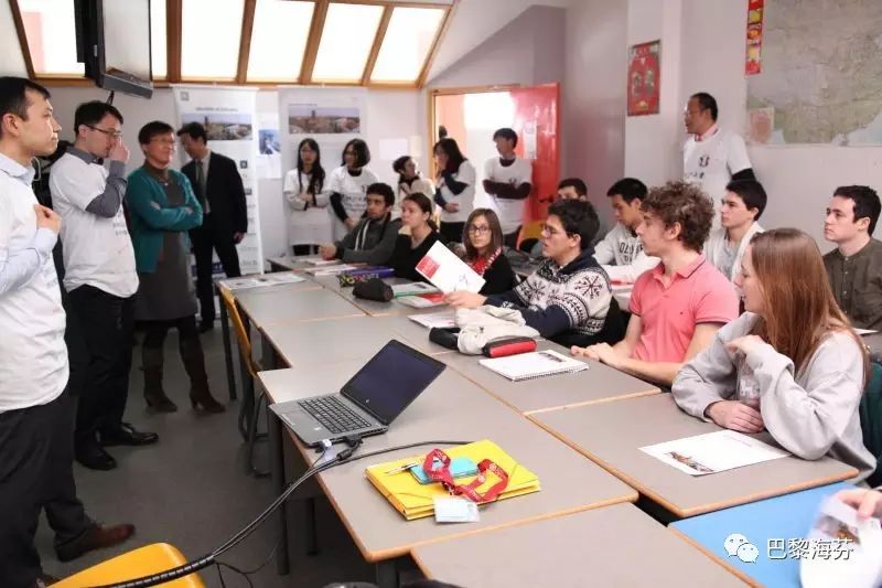 在Ecole centrale de Lyon,里昂中央理工校园的中文班,老师也已经等候很久了,我们一行分头行动:打开我们宣传浙江大学的易拉宝和专用多功能桌子,学妹们则把早就打印好的浙江大学介绍一一发给在这里学习中文的法国大学生们。接着,李颖达秘书长马上用流利的法语,向学中文的法国学生介绍浙大。记者现场采访了几位学中文的法国学生。其中一位女孩说,她爸爸就是80年代来法国的留学生。因为自己的血液里留有中国的血缘,所以学好中文是很有必要的;一位法国男孩说,他很喜欢中国,希望学好中文,可以去中国。一位已经去中国北京、上海等地旅游过的学生说,他希望学好中文,毕业以后可以去中国工作。大家都知道,中国现在经济发展很好,那里对年轻人来说,有更好的未来。老师说:这些学中文的大学生们,将来都有可能前往中国留学、工作,成为中法文化、教育交流的桥梁。