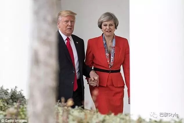 看看这两张图,特朗普牵起英国首相特蕾莎的手来,倒是十分殷勤。
