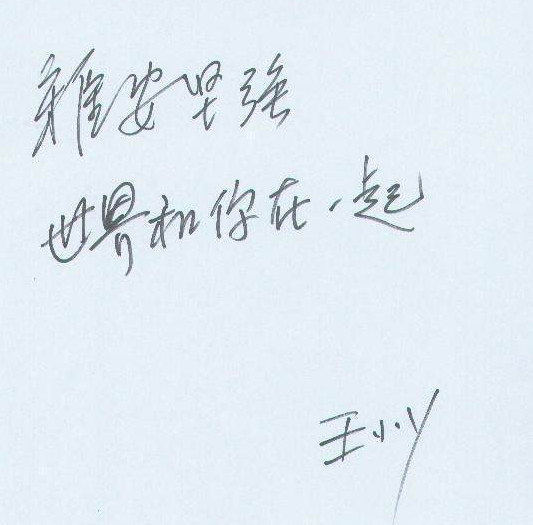 除了画画,王小丫的书法也很不错,她写的字端庄整齐,秀丽如大家闺秀。这是王小丫为雅安题的字:雅安坚强,世界和你在一起。