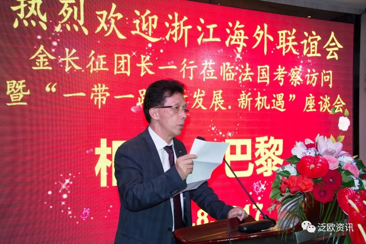 当晚20:16分,法国华商会会长、浙江侨联副主席卓旭光首先对浙江海外联谊会金长征常务副会长率领的代表团来法考察访表示热烈欢迎。