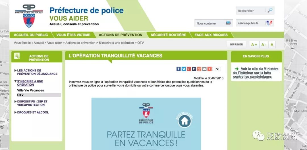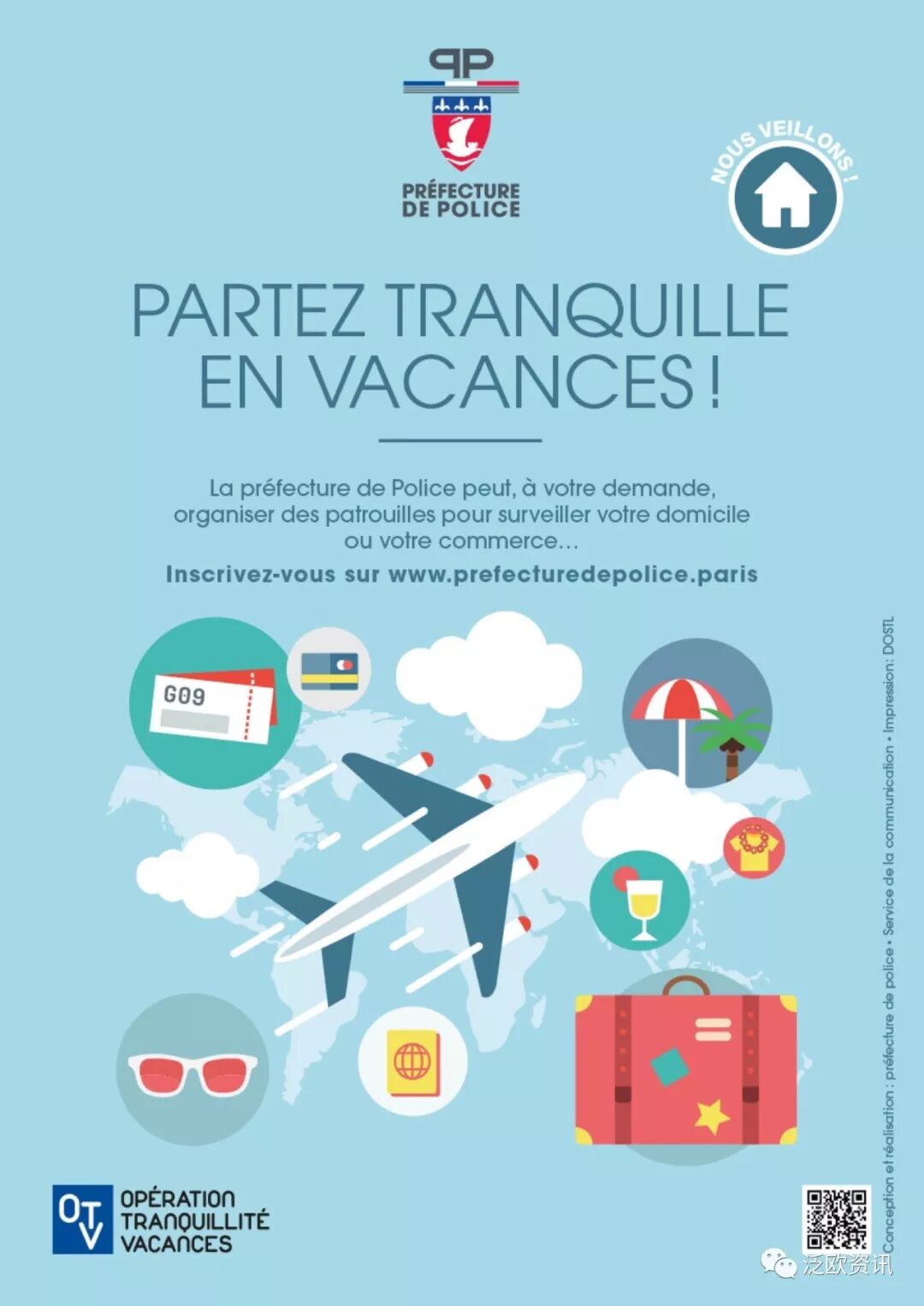 今夏,法国警局还针对法国的平民百姓推出了“平安度假”(OTV:Opération Tranquillité Vacances)行动: