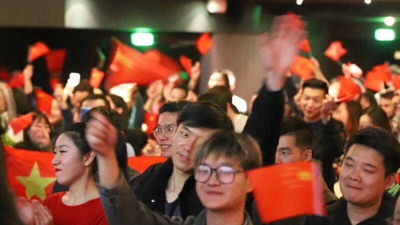 大家挥舞着手中的五星红旗,慷慨激昂的旋律瞬间点燃整座影厅……