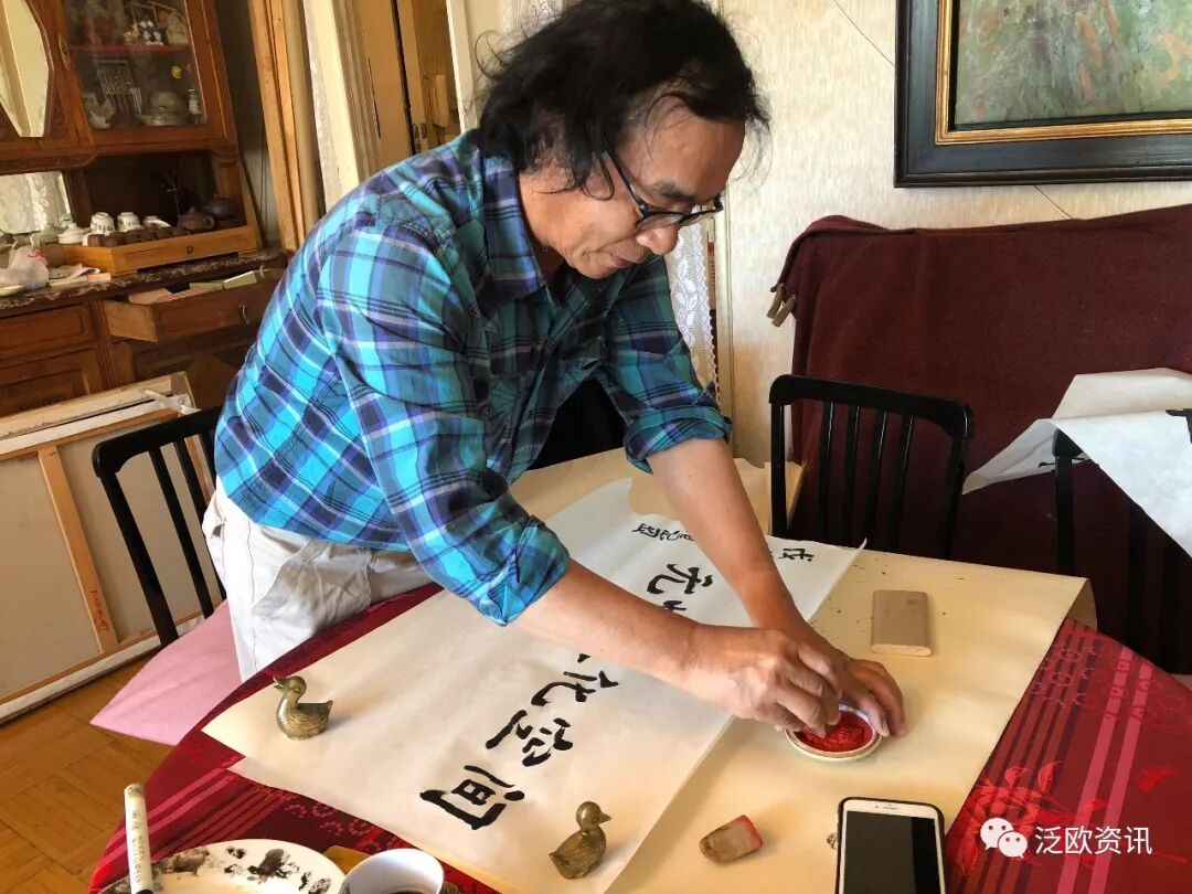 《法国侨报》编者按:捷克的作家木兄,介绍林湄大姐(欧洲华文文学会会长、著名荷兰华文作家)来巴黎,在巴黎无忧文化空间举办座谈会。 因为和采访另外一个音乐家撞车了,所以当晚座谈会没能见。 都是巴黎天空下的文化人,不见,心里过意不去。 今天一早,赶去93省见大姐。 哇塞,现场还见到了德国的大作家高关中!(一见如故的高先生,当即签名送我两本书!感恩!) 更奇特的是:10多年前就认识的林鸣岗先生,居然是林大姐的亲弟弟!中午午餐是林大画家亲手做的色香味俱全的美味佳肴! 拜读了林先生的画评,茅塞顿开受益匪浅,摘录第一篇如下: (林先生不仅画好,而且文笔了得!他还亲书了“无忧文化空间”给我!他还出版了好几本书!)