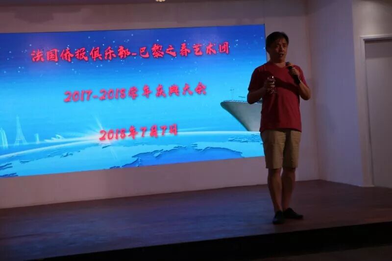 《法国侨报》讯(记者 海芬)音乐为媒,不忘初心,用歌声提升我们旅法华侨华人的综合素质,更好融入法国主流社会…… 2018年7月7日,法国侨报俱乐部——巴黎之春艺术团2017-2018学年庆典在巴黎国际大酒店举办,100多人参加了当晚的活动,学年庆典合唱取得空前成功! 艺术团团长刘志刚主持了晚会。 巴黎之春艺术团理事会共同主席吉祖英首先致辞。 她说:2017-2018学年是我们报俱乐部-巴黎之春艺术团特别值得庆贺的一年! 这一年合唱团获得飞跃发展,可以说是进入了我团合唱历史最佳时期。这体现在以下几方面: 1- 首先合唱团注册团员人数增加了50%; 2- 合唱整体水平比上一年有了新的提高,尤其是团员的发声技巧和音质有明显进步。6月16日的音乐会上的突出的表现获得专业人士和了解我团以往水准的朋友的一致赞誉! 3- 团员们大部分参加了辛博老师的三期声乐基础课训练,团员们能基本掌握正确的发声法,不少团员从对声乐知识和技能一无所知,或知之甚少到有了初步的概念。参加过训练的团员一致评价辛博老师的教学认真、负责、得法,受益匪浅,还希望团部下学年继续举办。 4- 由郏老师和洪丽丽老师执教的乐理知识课,普及了简谱的识读知识,参加的团员收益多多。 5- 合唱曲目的难度进一步增大:如今年两场音乐会上演唱的« 天路 » ; « 菊花台 », 男女混声版的 « 敕勒歌 », « 玫瑰人生 »,古诺拉丁语的« Gloria »等。团员们刻苦练唱,做到了脱谱熟练演唱意大利文、拉丁文、法文的经典作品。 6- 在13区区府成功举办了« 春之晓 2.0版»新春音乐会,参加了95省亚当市中法文化节,与法国合唱团同台,奉献了一场高水准合唱音乐会。我团的演唱水准获得组办方的高度评价,歌声深深打动了法国观众和专业音乐人士,他们禁不住潸然泪下!我团被法国合唱同仁誉为一个了不起的华人合唱团!男声部的菊花台演唱十分出彩。音乐会之后团员们的士气空前高涨! 7- 有一个团结、高效、包容开放,有奉献精神的理事会团队;有一批有奉献精神的团员和志愿者……还有许多好人好事未能在此一一列举。请大家相信一切尽在不言中!总之,我们这个集体的进步离不开每一位团员的奉献! 接着,吉祖英畅谈了合唱团下一学年的规划和展望(2018年9月-2019年12月): 1 将于2019年2月份,即中国年期间在马德莱娜大教堂举办一场大型新春音乐会; 2 受Aubervilliers市府邀请,将于2019年2月9日在其所属的美德圣母教堂Eglise Notre Dame des Vertus 举行一场新春晚会。 3 争取2019年春节再登13区区府舞台,举办3.0春之晓新春晚会。 4 受黄河大合唱词作者光未然次子的邀请,2019年上半年将重唱黄河大合唱,以纪念这部伟大作品首次公演80周年庆 …… 在一片掌声和赞美声中,吉祖英团长提醒大家:我们须牢记,成绩只能代表过去,我们要重新出发攀登新的高峰,唱出更美更好的声音! 希望我们全体团员继续发扬本团的优良团风,团结互助,不忘初心,我们的宗旨就是歌唱,用歌唱提升我们旅法华人的文化素质,以音乐为媒介,更好融入法国主流社会。 法国侨报执行主席、巴黎之春艺术团理事会共同主席李建国致辞说: 1)我们在异国他乡相聚一起,要不忘初心:愉悦心情,陶冶情操,健身康体,展示在外华人的新面貌,宏扬中华文化 2)合唱团成员是我心中最可爱的人,心灵最美的人!几年来,合唱团在迅速发展壮大中,大家互相关心,互相帮助,互相理解,互相包容,大家尽心尽力涌现了许多可歌可敬的故事。我为成为其中一员而自豪!我相信新的一年里,我们一定会精诚团结共同努力更上一层楼! 当晚,每一个人都打扮得喜气洋洋:男生帅气;女生优雅。无论是独唱,还是共舞;无论是朗诵,还是合唱……大家都全神贯注,整常演出20个节目精彩绝伦,让人大开眼界,连巴黎国际大酒店的服务员都忍不住过来拍摄、鼓掌、喝彩……大家都像家人一样,一起度过了一个难忘的美好夜晚!