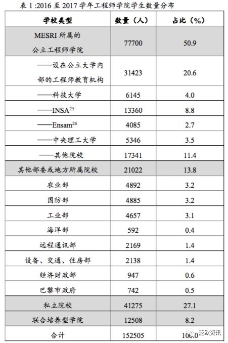 《法国侨报》讯:2016至2017学年,全法工程师学院共有学生15.3万名,比2015至2016学年增长了4.1%,其中私立工程师学院学生涨幅达到7.7%。 在15.3万名学生中,7.8万就读于高等教育、研究和创新部(MESRI)所属的工程师教育机构,占比50.9%;2.1万就读于其他部委所属学院,占比13.8%;4.1万就读于私立学院,占比27.1%;另有1.3万就读于联合培养型学院,占比8.2%。(详见表1) 按性别比例来看,就读于工程师学院的学生中,女生相对较少,仅占26.9%,比上一学年增长3.8%。在私立工程师学院中,女生占比涨幅最明显,达6.4%。根据学院类型不同,女生占比也显示出很大差别,比如国立高等工艺学院(CNAM)中,女生占比最低,约为16%,而在农业部所属的工程师学院中,女生占比相对高很多,达到66%。 2016学年,工程师学院大一入学新生数为4.1万,比上年增长3.2%,其中隶属于高等教育、研究和创新部的学院以及私立学院中新生人数涨幅最显著,分别达到5.7%和4.6%。 根据工程师学院大一入学新生来源,来自高等精英学院预科班(CPGE)的毕业生占比最高,达38.9%;其次为来自联合培养预科班的毕业生,占比23.8%;获得大学技术文凭(DUT)或高级技术员证书(BTS)后进入工程师学院一年级的学生占比约为19.8%;来自公立大学毕业生占比6.7%。(详见表2) (撰稿:张欣 里昂二大 审核:杨进) 资料来源: 法国国民教育部预测评估司《2017法国教育统计年鉴》(Repères et références statistiques de 2017 |