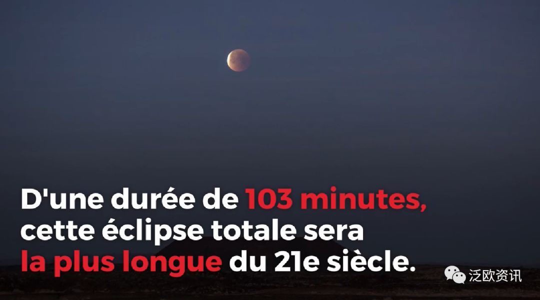 精彩绝伦的月全食将于今晚现身! 专家说,这可是21 世纪持续时间最长的月全食哦! 法国的海外省la reunion是这次观看奇观的最好地点。 今晚22:20分,可能是最好看的时分。 请带上你的天文望远镜,赶紧去找个宽阔的地方,看奇景吧! 来不及买望远镜了? 没有关系! 肉眼一样可以欣赏啊! 这次奇景将会持续103分钟。 午夜时分, 月亮将与天空中另一颗闪亮的星星:火星擦肩而过,即所谓的“火星冲日”现象。 知识: 从地球上观测,当火星和太阳分别处于地球两侧时,天文学上称为“火星冲日”。如果冲日时的火星恰好位于近日点附近,就是火星大冲,此时,火星最为接近地球,看起来会特别明亮。天文资料显示,火星每15或17年就会发生一次大冲。