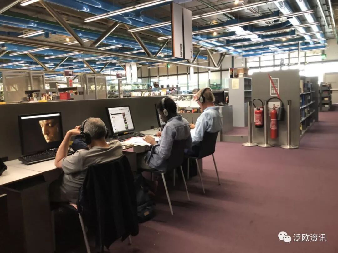 背着电脑,从门口直接走进蓬皮杜文化中心图书馆。 门口例行检查的大哥,态度非常好:请打开包看看? “当然!”我非常配合。这是规矩。 包包进去了。 “不要查看证件吗?”我惊讶地问。 “不用,你直接上图书馆就好啦!”检查大哥依然笑眯眯跟我说。 “希望你度过美好的一个下午!”当我跨进自动扶梯时,优雅检查大哥不忘给我一句祝福。 好温暖!(以前来这个图书馆,总是要排队。今天居然一个人都没有!直接进!) 一楼……人满为患…… 二楼……还好,有位置! 柔和的台灯中间,有4个充电器;中间是一个个可以供人看书的常规图书馆位置,带里电脑等,可直接插上就用。网络呢,免费;里面很凉快,居然,有空调!(怕冷的朋友,记得带一件外套哦!时间长了,会觉得有点凉凉的。) 如果你不带电脑,在图书馆左右两边,有几十台(具体没有数)笔记本电脑,无偿供人使用(为了不影响别人,电脑旁都有耳机配套哦);一排排图书,按照分类,全部,全部,免费供人查阅!