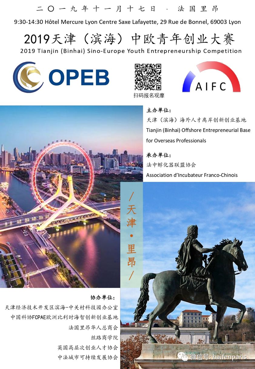 《法国侨报》《华人头条 法国》讯:11月17日!!经过半年多的筹划与组织,由天津(滨海)海外人才离岸创新创业基地(OPEB)主办,法中孵化器联盟协会(AIFC)承办的“2019天津(滨海)中欧青年创业大赛欧洲赛区决赛”将于2019年11月17日在里昂举行。 此次大赛旨在通过双创大赛的形式,为天津(滨海)海外人才离岸创新创业基地网罗世界一流的双创项目,引进国际顶尖的双创人才,进一步夯实并扩展引才引智渠道,为打造国际化离岸双创服务平台创造条件。